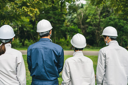 解体工事には、周辺地域への影響を含む総合的な調査が必要です。現場周辺の環境を綿密に調査・検討したうえで、環境への影響が最も少ない工法を選択し解体工事に取り掛かります。